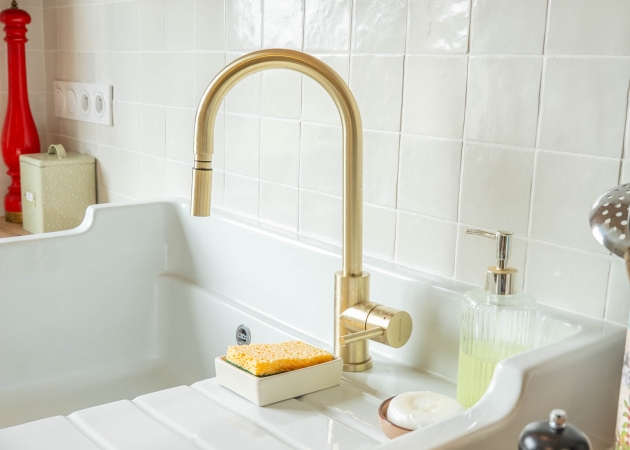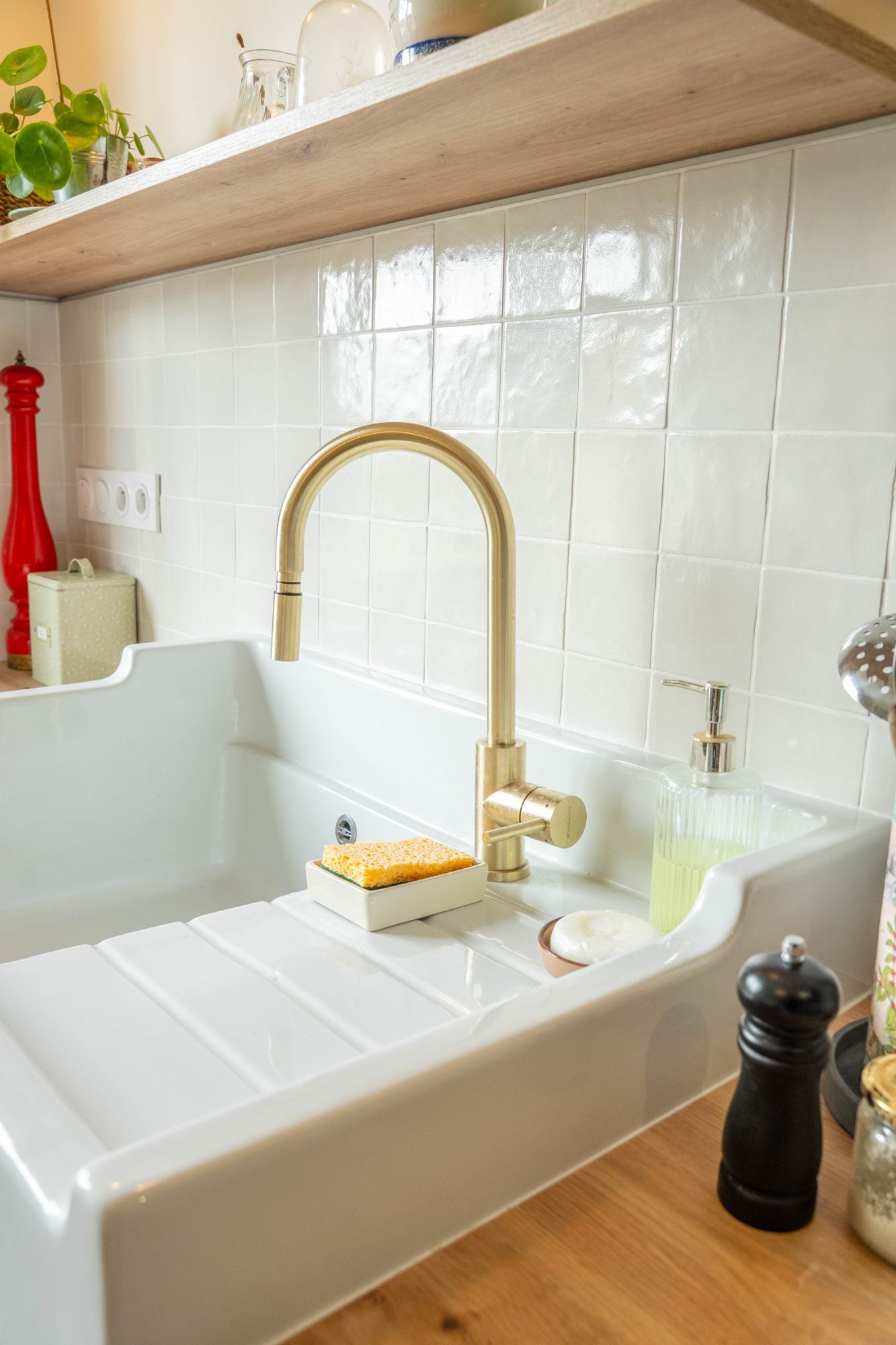 - une crédence en zellige crème, qui renforce le charme et l’élégance de l’ensemble.